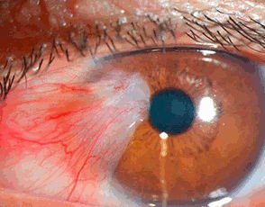 É uma formação carnosa que avança sobre a córnea, geralmente do lado nasal como uma resposta do olho a um processo de irritação ocular crônica.
