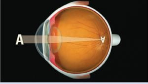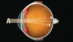 Os raios de luz formam-se em múltiplos focos e em diferentes pontos. Neste caso, tanto a visão para perto, quanto para longe fica desfocada.